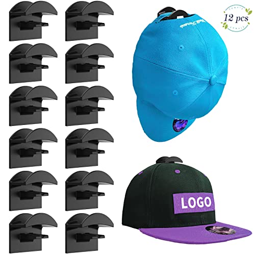 Towviy 12 Pezzi Ganci per Cappelli, Gancio di Cappello Autoadesivo Porta Cappelli Bianco Cappelli Curve Ganci Adesivo Berretto Appeso Porta Adesivo Ganci per Berretti da Baseball (Nero)
