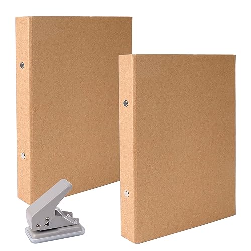 Towviy Raccoglitore ad Anelli A5, 2 Pezzi Raccoglitore Kraft Cartella Documenti A5 con Perforatrice, Dorso 35 mm, Esterno 23.5 * 17.6 cm per A5