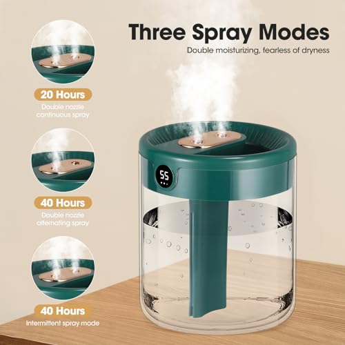 Towwoo Umidificatore Camera da Letto, 2L/ 20H Umidificatore a Diffusore Automatico per Bambini Piante da Ufficio, con Luce Notturna, Monitoraggio dell'Umidità, 36 dB Funzionamento Silenzioso (Green)