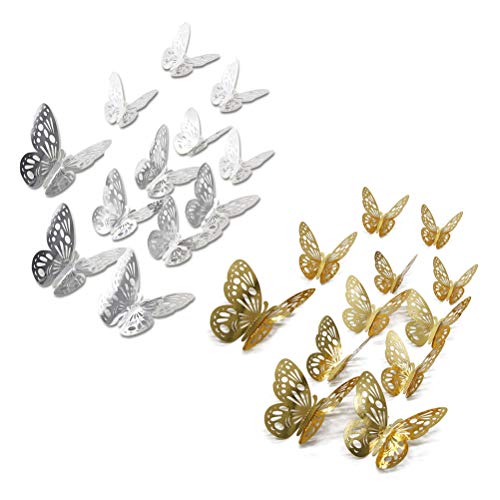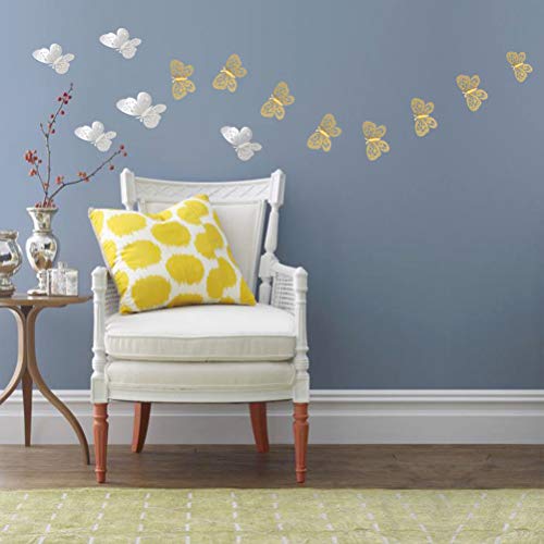 TOYANDONA 12pcs Butterfly Wall Sticksers Hollow Out Decorative Artificial Fridge Stickers Mural Stickers per Camera dei bambini Sala soggiorno Dorata