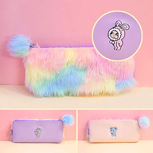 TOYANDONA - Astuccio in peluche a forma di arcobaleno per matite, penne, cosmetici, trucchi, monete, borsetta per ragazze