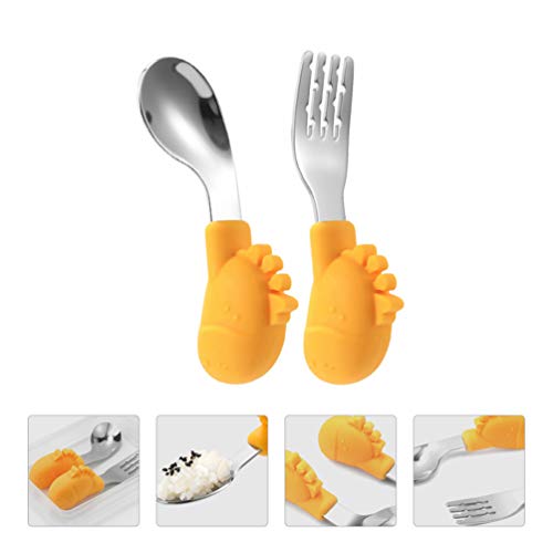 TOYANDONA Cucchiaini per Neonati Set Forchetta Cucchiaio per Alimentazione in Silicone Curvo Cucchiai per Neonati Forchetta per Prima Fase Addestramento per Bambini Stoviglie per Bambini