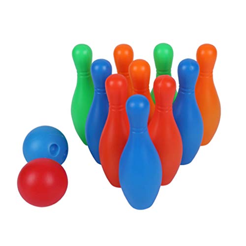 Set da bowling di alta qualità: il set da bowling comprende 3 colori vivaci, 10 spille in plastica e 2 palline da bowling. Le palline da bowling sono utilizzate in plastica di alta qualità, atossica e sicura per far giocare i bambini.