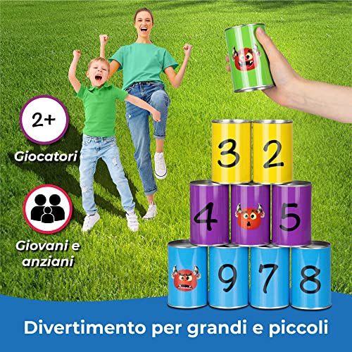 Toyfel Set di 13pz. gioco di lancio delle lattine Davin gioco di lancio per bambini - gioco da esterni e interni - gioco da festa, compleanno, da viaggio - gioco delle lattine all'aperto