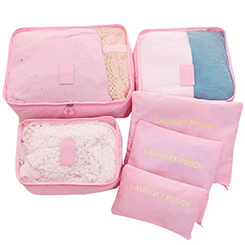 Toyfun imballaggio organizer da viaggio Light imballaggio borse impermeabili shoe organizer Large Medium Small Laundry compressione sacchetti 6 set Pink