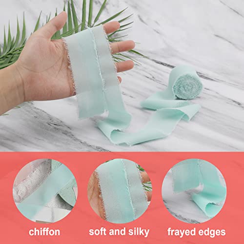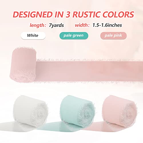 TOYMIS Nastro di Chiffon, 3 Rnastro in Chiffon di Seta Rotoli di Nastro Bianco Matrimonio Nastri Verdi e Bianco Crema e Rosa Chiaro Set per Bouquet, Matrimonio, Confezioni Regalo (4 cm x 6,4 m)