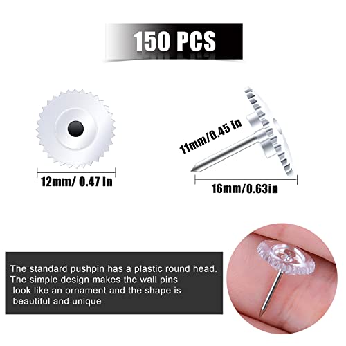 TOYMIS 150 pezzi Push Pin, Puntine da Disegno Trasparente Puntine Decorative Puntine per Ingranaggi con Punta in Acciaio Inossidabile per Mappe con Immagini Poster Piano Giornaliero (Trasparente)