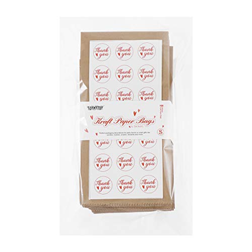 TOYMYTOY - Sacchetti di carta kraft con adesivi per feste, 100 pezzi, 18 x 9 x 5,5 cm