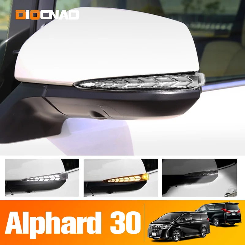 For Toyota Alphard 30 Series 2015-2019 LED Side Mirror Turn Signal Light Flowing Turn light+Daytime Running Light+Welcome Lamp