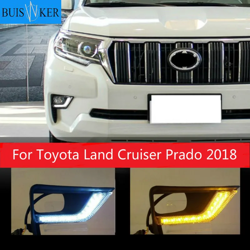 2PCS LED For Toyota Land Cruiser Prado 2018 DRL Daytime Running Light Daylights Fog lamp With Turn Signal Lamp