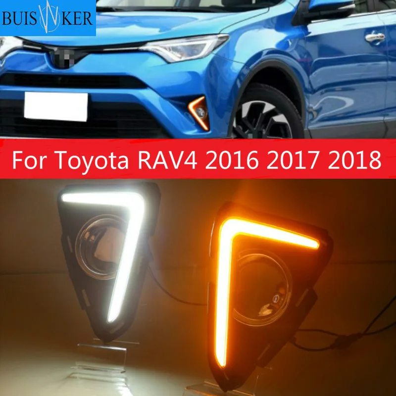 2PCS For Toyota RAV4 2016 2017 2018 Car LED DRL Daytime Running Lights With Turning Signal Fog Lamp Auto Lights Lamp Accessories