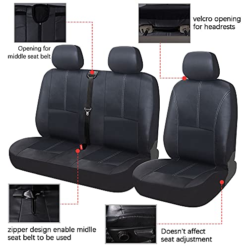 TOYOUN Coprisedili Universali In Ecopelle per Furgoni 3 Posti per La Maggior Parte Dei Furgoni Protezione per Seggiolini Auto Singoli e Doppi Coprisedili 2+1 Nero