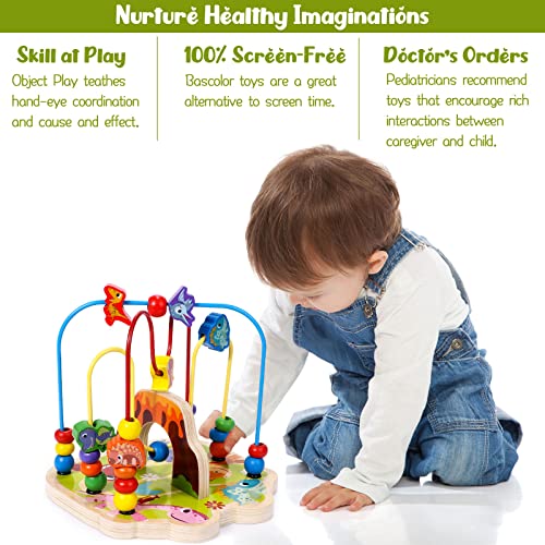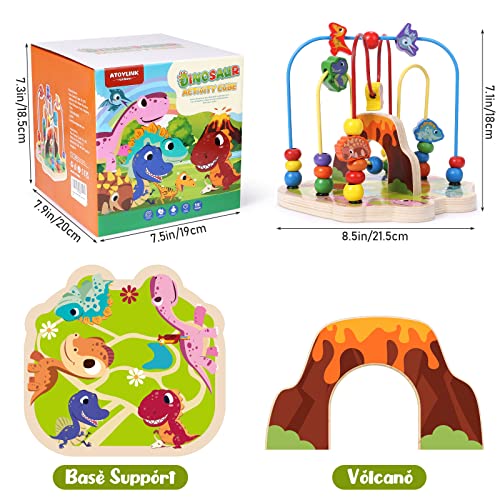 Toyssa Labirinti di Perline di Legno Giochi Montessori 1 Anno Activity Cube con Perline di Dinosauro Giochi per Attività Motorie Giocattoli in Legno per Bambini Bambina18 Mesi