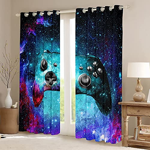 TOYUN Gamer - Tenda per bambini, motivo: Universo Galaxy Videogiochi, per camera da letto, per ragazzi, con cielo stellato, set di 2 pannelli (132 x 213 cm)