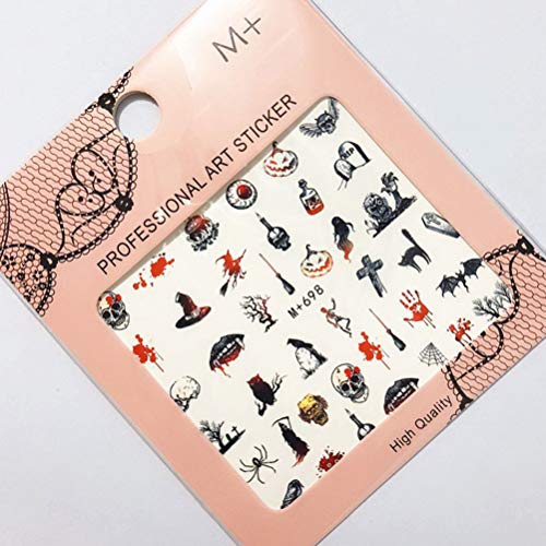 Toyvian adesivi per decalcomanie per unghie di halloween, unghie manicure per teschi per festa di halloween, 14 fogli