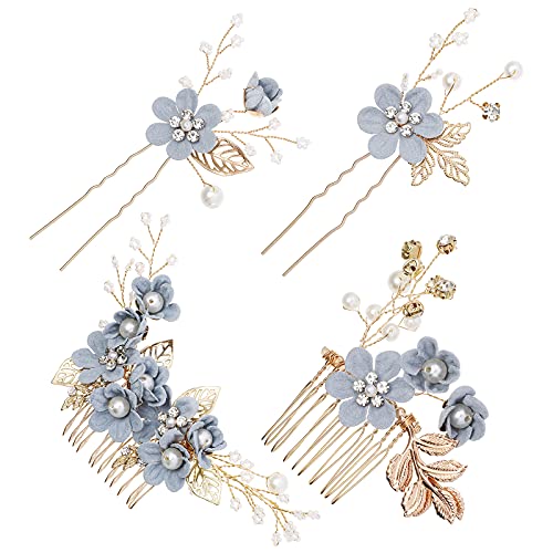 Toyvian - Set di 4 pettini per capelli con strass e cristalli, per matrimonio, decorazione nuziale o per la festa di nozze (blu)
