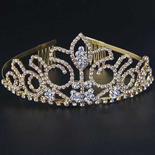 Toyvian Wedding Bridal Prom Shining Crystal Rhinestones Crown Tiara Headband (Oro)