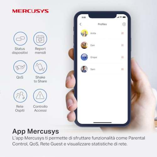 Facile controllo dell'app: utilizza l'app MERCUSYS per configurare e gestire rapidamente il tuo WiFi.