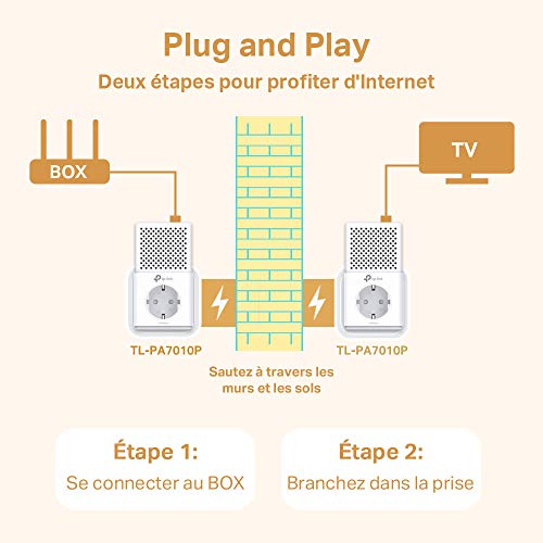 TP-Link CPL 1000 Mbps con 1 porta Gigabit Ethernet e presa integrata, kit di 2 - soluzione ideale per godere del servizio Multi-TV a casa TL-PA7010P KIT(FR)