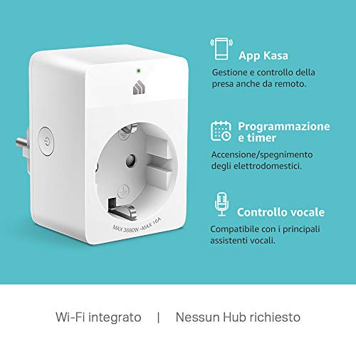 TP-Link Presa Intelligente wifi Compatibile con Google Home/Amazon Alexa, Controllo da Remoto, Design Compatto, 16A 3680W(KP105), Dispositivo Certificato per gli umani