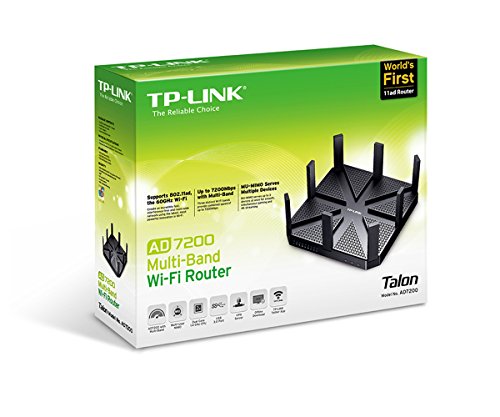 TP-Link Talon AD7200 Router, Wi-Fi 802.11ad, Mu-MIMO, Tri Band: 60 GHz, 5 GHz e 2.4 GHz, Processore 1,4 GHz Dual-Core, 4 Porte Gigabit LAN, VPN, 2 USB 3.0, 8 Antenne