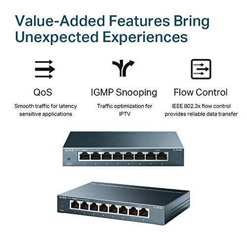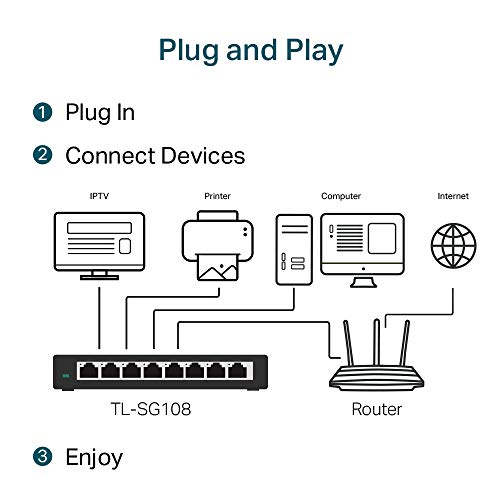 TP-Link TL-SG108 Switch 8 Porte Gigabit, 10/100/1000 Mbps, Plug & Play, 802.1p/DSCP QoS, IGMP Snooping, Involucro in Metallo Resistente, Installazione Facile, Tecnologia Green Ethernet, IEEE 802.3x