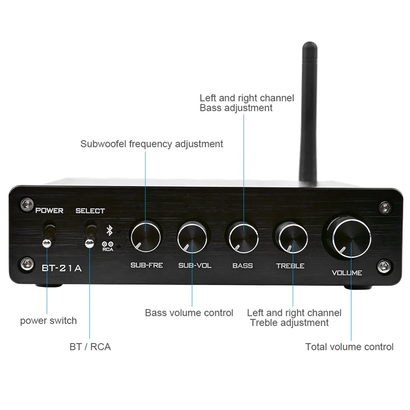 Tpa3116 Subwoofer Bluetooth Amplifier Hifi Tpa3116D2 2.1 Channel Digital o Amplifiers 50W x 2+100W Dc12-24V