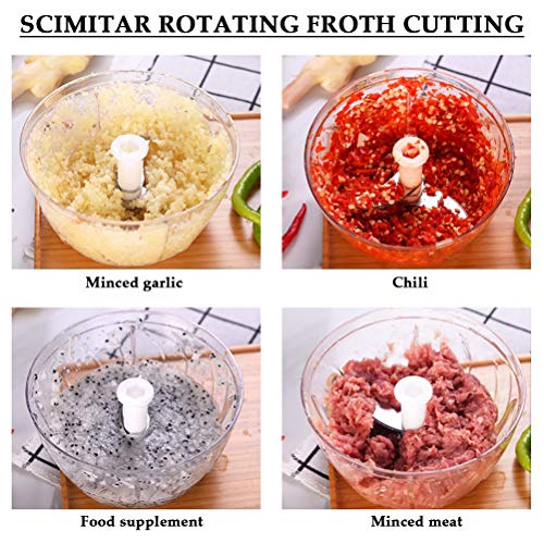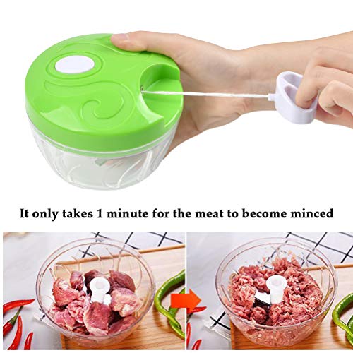 Tritatutto manuale: Il tagliaverdure manuale è completamente alimentato a mano, basta inserire i tuoi ingredienti preferiti nella ciotola, chiudere il coperchio e tirare la corda per iniziare a sminuzzare.