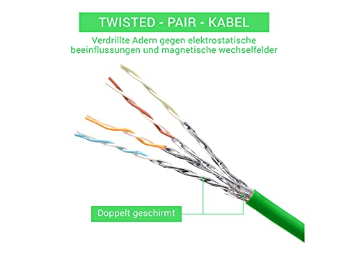 TPFNet 10 Pezzi Cavo Ethernet 0,25m Cat.6 SFTP Doppia Schermatura, 1 Gbps, Verde