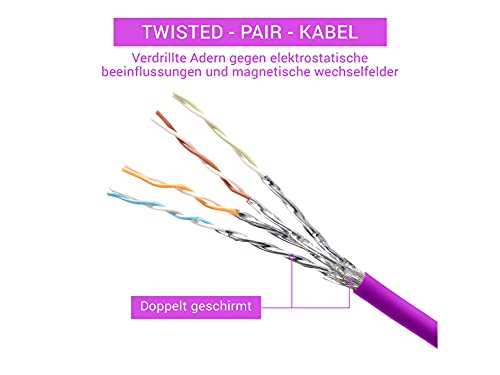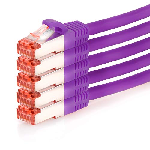 TPFNet 5 Pezzi Cavo Ethernet 1,5m Cat.6 SFTP Doppia Schermatura, 1 Gbps, Viola