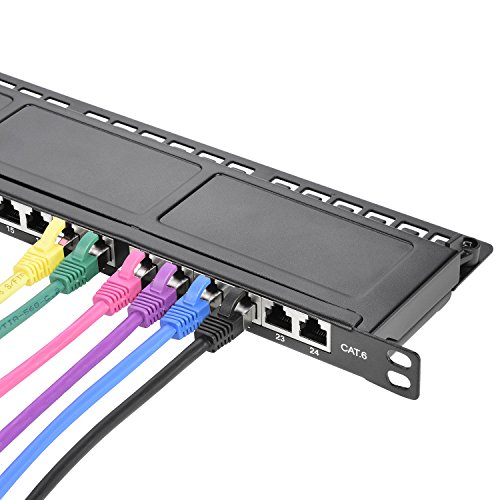 TPFNet Premium Patchfeld, Patch panel CAT 6, Patch panel Cat6, 24 porte, 24 X 19/0,5 He (mezza altezza), con morsetti LSA, per il collegamento di installazione cavo di rete, Nero RAL 9005, completamente schermato con corpo in metallo, Patch panel con 24 X connettore RJ45, schermato