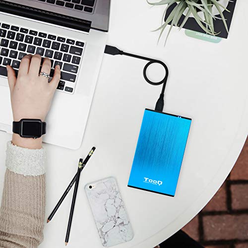 TOOQ TQE-2527BL - Contenitore per dischi rigidi HDD da 2,5", (SATA I/II/III fino a 9,5 mm di altezza, USB 3.0), alluminio, indicatore LED, blu, 50 grammi