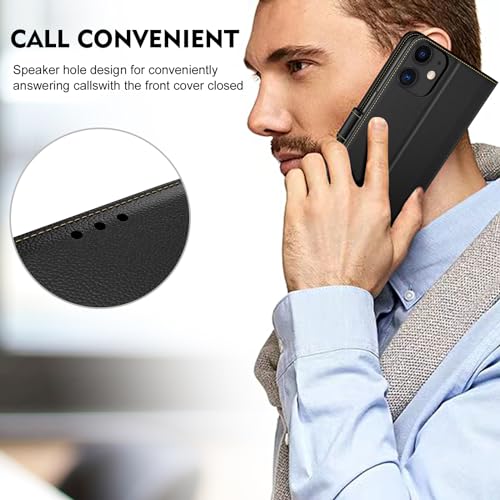 TQIAHF Cover per iPhone 11 Cover Custodia a Libro in Pelle con Porta Carte Magnetica Libretto Portafoglio Flip Case Antiurto Protezione Completa Cover Telefono Custodia per iPhone 11,Nero