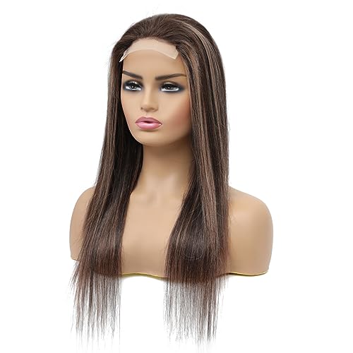 TQPQHQT Wigs Human Hair Parrucche Donna Capelli Veri Straight Wig For Women 4x4 Swiss Lace Closure Wig 150% Density P4/30 Honey Brown Highlight Hair Wig Brazilian Virgin Hair Wig 18 Inch