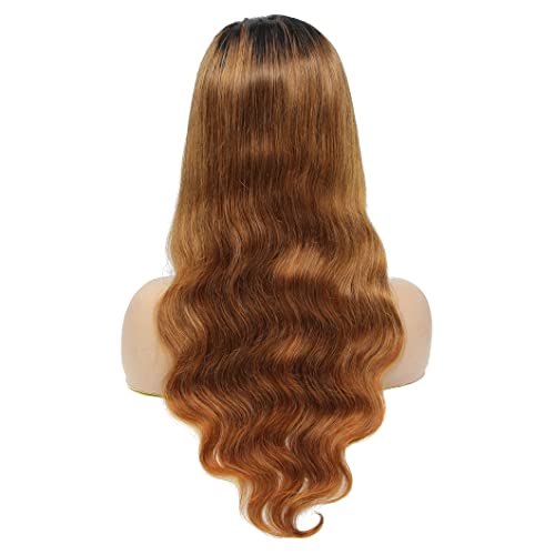 TQPQHQT Parrucche Capelli Veri Human Hair Wigs Ombre Blonde Wig 4x4 Free Part Lace Closure Wig Bleached Knots With Baby Hair Brazilian Hair Wig Body Wave Wig 1B/30 Color 26 Inch