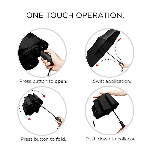 Tquens Ombrello Pieghevoli Antivento Automatico, [One Hand Open & Close], Compatto Antivento Ombrello con 41.5 inch Wide Canopy Extra, Robusto Ombrello per Esterno da Viaggio - Nero (000EH20660)