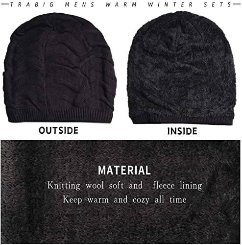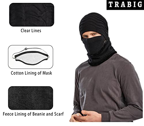 TRABIG 3 PCS Invernali Cappelli Uomo Berretto Sciarpa Maschera, Invernali berretti Foderato Caldo in Taglia Unisex