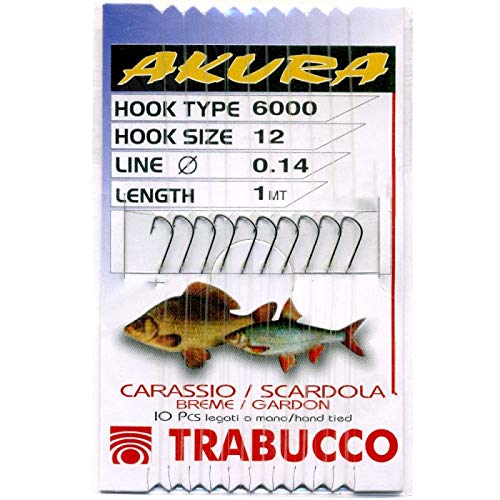 Trabucco Ami da Pesca Legati con Filo Fluorocarbon Akura Carassio 6000 BN Amo 10 Filo 0.18 mm Amo Trota Lago Mare Surfcasting