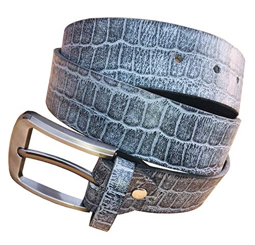 Trachten Center Cintura da uomo e da donna, in pelle di coccodrillo, per uomo, in vera pelle, effetto usato, con fibbia argentata, girovita 85 - 155 cm (Grigio Anticato, 90)