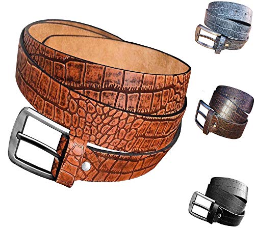 Trachten Center Cintura da uomo e da donna, in pelle di coccodrillo, per uomo, in vera pelle, effetto usato, con fibbia argentata, girovita 85 - 155 cm (Marrone Antico, 100)