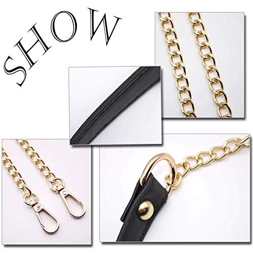 Tracolla a Catena In Metallo a Mano Tracolla a Catena Per Borsa Tracolla Per Borsa Catena Per Manico Borsa Ricambio Morbida Tracolla Per Borsa Accessori Fai Da Te Catena Dorata e Pelle Nera 120 Cm