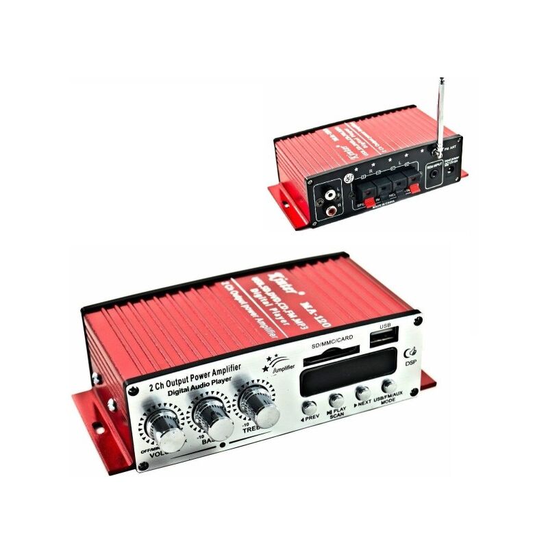 Amplificatore audio piccolo e compatto da installare ovunque utile per migliorare e amplificare la qualità del suono in auto o a casa. Alimentazione a 12V (alimentatore non incluso), sviluppa una potenza di 40W su 2 canali, quindi 2x20W. Dispone di una porta usb per la riproduzione di mp3 ed utile anche per la ricarica dei dispositivi, ingresso SD se non disponete della penna USB, completo di telecomando per la gestione a distanza, munito di antenna per ricevere segnali FM. Possibilità di equalizzare il suono a nostro piacimento grazie ai tre potenziometri dove sarà possibile controllare gli alti ed i bassi ed il volume. Munito di cavetto con sensore che da la possibilità di installare l'amplificatore anche in zone nascoste ad esempio sotto un cruscotto e quindi il sensore torna utile allungandolo e rendendolo visibile al telecomando.Caratteristiche tecniche MA-120:Potenza di uscita: 2x20W maxSNR: 85dBAlimentazione: Dc 12V-5A (ALIMENTATORE NON INCLUSO)frequenza: 20Hz e
