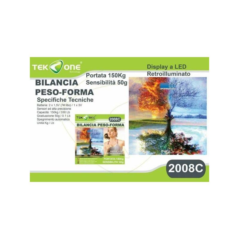 Bilancia Pesapersone TeKone 2008c Misura Peso Digitale Display Fantasy 150kgLa Bilancia Pesapersone TeKone 2008c è la scelta perfetta per tenere traccia del tuo peso in modo preciso e affidabile. Con un design digitale moderno e un display Fantasy, questa bilancia non solo è funzionale ma anche esteticamente attraente.Caratteristiche Principali:Misurazione Digitale Avanzata: La tecnologia di misurazione digitale di precisione ti offre risultati affidabili.Capacità fino a 150kg: Questa bilancia è in grado di misurare il peso fino a 150 chilogrammi.Display: Il display rende l'uso della bilancia facile.Design Elegante: Il design moderno si adatta a qualsiasi bagno o ambiente.Contenuto della Confezione:La confezione include:Bilancia Pesapersone TeKone 2008cManuale d'uso dettagliato per una configurazione sempliceCon la Bilancia Pesapersone TeKone 2008c, puoi monitorare il tuo peso con facilità e stile. È il partner ideale per mantenere il controllo della tua salute e del tuo
