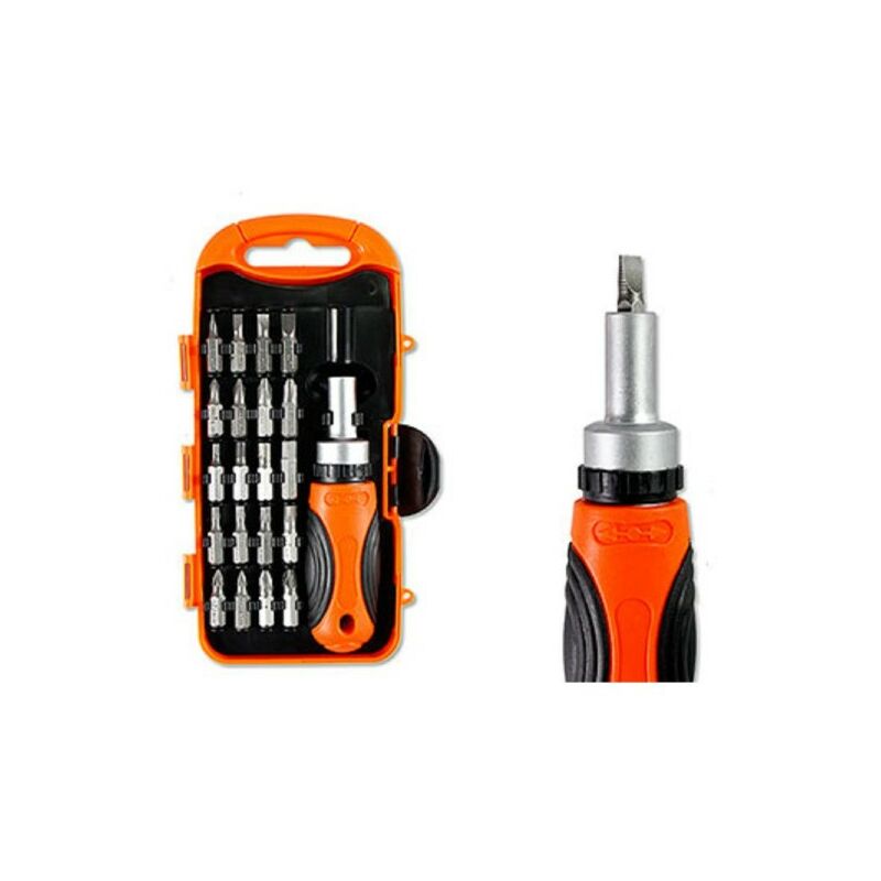 Pratico kit di cacciavite a cricchetto comodo da portare, infatti basta solo staccare la punta dal cacciavite ed inserirne un altra senza la necessità di portare con sè la cassetta degli attrezzi con tutti i cacciaviti ingombranti, potete inoltre regolare il cricchetto ruotando la banda nera seguendo le freccette: a destra, sinistra o al centro per avere il classico cacciavite.SPECIFICHE TECNICHE:PH0 - PH1 - PH2 - PH3 - 3.0 - 4.0 - 5.0 - 6.0 - PZ0 - PZ1 - PZ2 - PZ3 - H3 - H4 - H5 - H6 - T15 - T20 - T25- T30