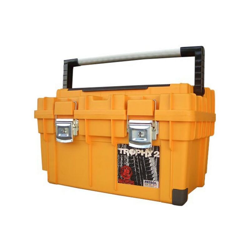 Cassetta attrezziCassetta attrezzi Trophy 2 in plastica doppia antiurto.Parte superiore con 12 scomparti (removibili) per pezzi di minuteria.Chiusura di sicurezza con possibilità di inserire un lucchetto (non incluso).Maniglia grande in alluminio per un facile trasporto.All'interno un ulteriore box (diviso in 2 scomparti) per inserire gli attrezzi.MisureEsterne (Larghezza x Spessore x Altezza): 58x35x35cmInterne (Larghezza x Spessore x Altezza): 50x28x26cmBox (Larghezza x Spessore x Altezza): 40x28x11cm