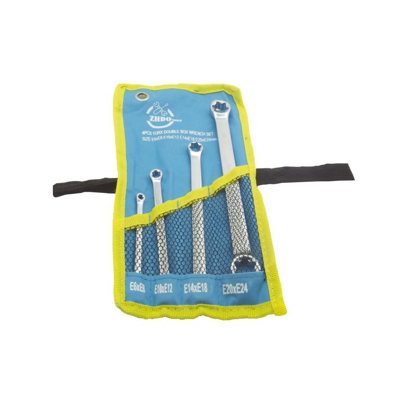 Set di 4 chiavi torx femmina da E6 a E24. Ideale per officine meccaniche o per amanti del fai da te. Le chiavi sono contenute in un comodo astuccio pieghevole in modo da tenerle sempre in ordine e senza rischio di perderle.Caratteristiche tecniche:Misure: E6xE8 - E10xE12 - E14xE18 - E20xE24 La confezione contiene:Nr. 4 ChiaviNr. 1 Astuccio