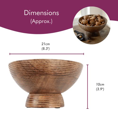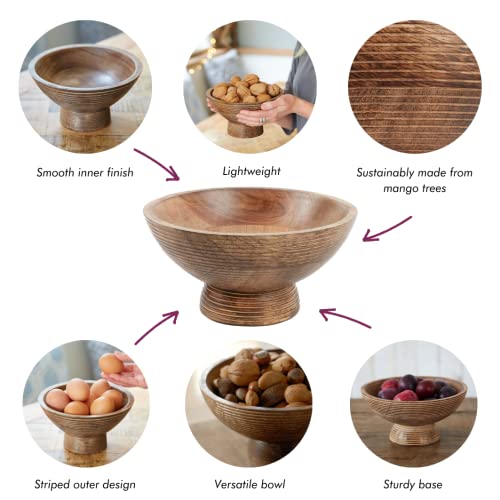 Intagliato a mano in legno di mango, questa elegante ciotola in stile piedistallo ha un design a righe sottili.