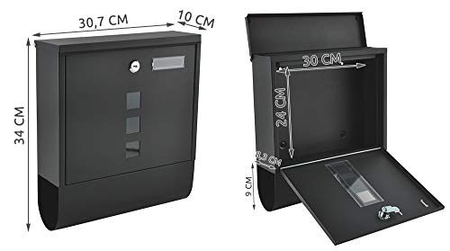Design Mailbox Large, Steel Metal, Outdoor, Front Door Mail Boxes Black 6244 della marca Iso Trade