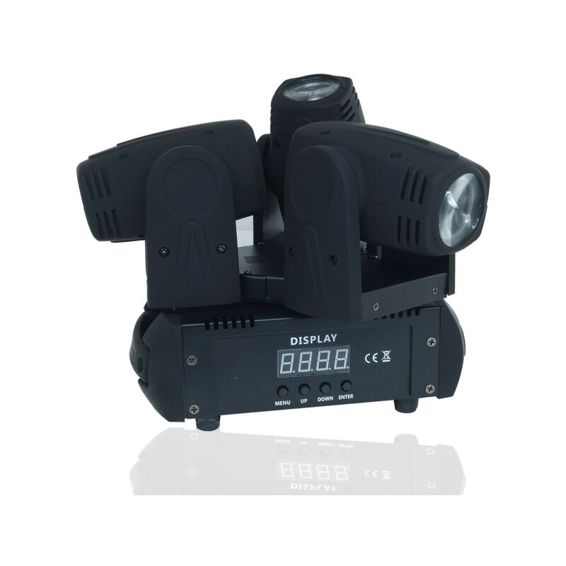 Faro Con Testa Rotante Con Tre Fari Led Rotanti Con Fasci Di Luce Ed Effetti Disco Colorati O Strobo. Può Essere Montato A Parete Grazie Alla Staffa In Dotazione, Ma Anche Lasciato A Terra O Su Di Un Ripiano Grazie Ai Piedini Di Gomma Sulla Base. Può Essere Comandato A Distanza Tramite Cavo Dmx512 Master O Slave 15 O 20 Ch. Adatto A Qualsiasi Ambiente: Discoteca, Pub, Locali Per Feste. Nella Parte Frontale è Presente Il Display Ed I Comandi Per La Programmazione. Nella Parte Posteriore Sono Presenti Gli Attacchi Dmx E L'attacco All'alimentazione.caratteristiche Tecniche:3 Led 4 In 1 (rgb+w) 12wluce Effetto Strobotesta Rotantemodo Di Funzionamento: Dmx512, Master-slave, Auto, Soundalimentazione: Ac90-240v, 50/60hzpotenza 60wrotazione Di 540°dimensioni: 30x28x30 Cm Circa La Confezione Contiene:nr. 1 Faro Testa Rotante Doppia Faccia Led Rgbnr. 1 Staffa Per Paretenr. 1 Cavo Alimentazione