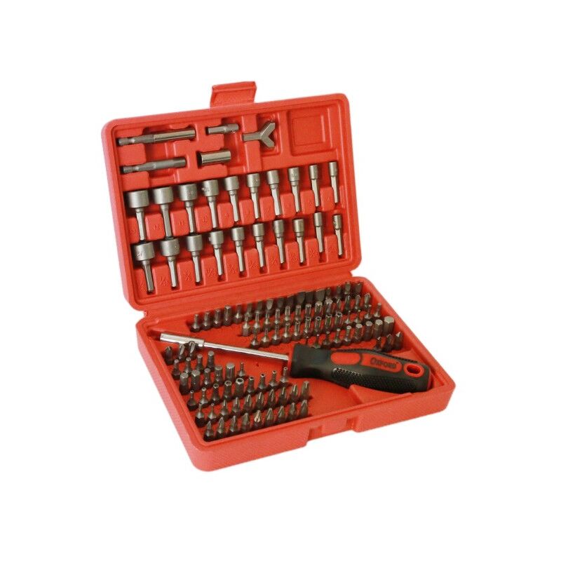 Kit composto da inserti a bussola, torx a taglio, a croce,punte stella a 3 viti, utilissimo per apparecchiature di marche più prestigiose. Dispone di inserti esagonali con punta forata, con punta biforcuta o punta a vortice. Ottima e utilissima valigetta, veramente indispensabile sia da tenere in casa che per il fai da te.Caratteristiche e Contenuto1 Valigetta1 Cacciavite5 Adattatori per inserti10 Bussole italiane da 4 a 13mm10 Bussole americane di varie misure95 Inserti come sopra ( taglio croce torx)